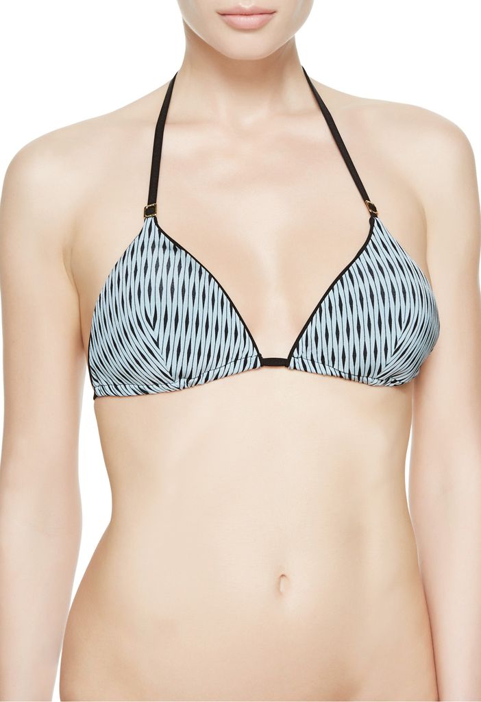 + Mô tả: Áo bikini vải thun Lycra® siêu nhẹ mượt, họa tiết hình học kim cương. Được trang trí với khóa kim loại và các vòng kim loại khắc logo La Perla.