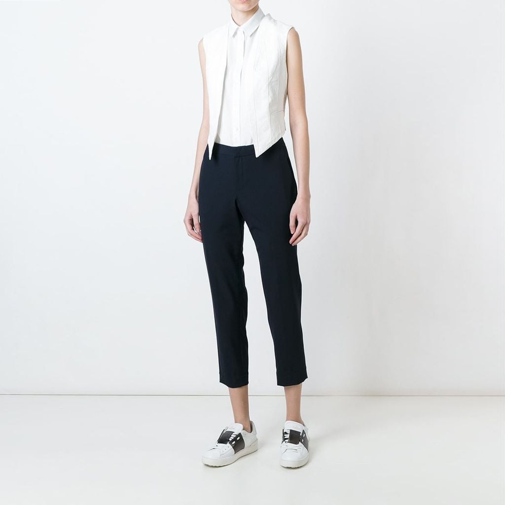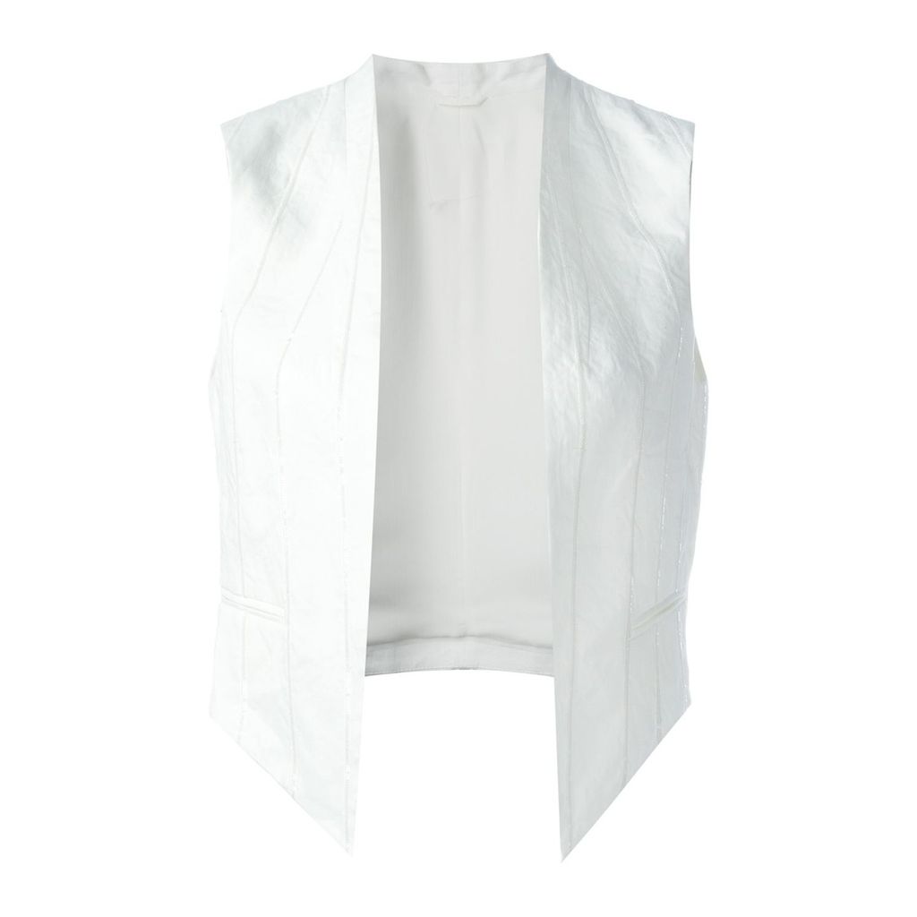 + Mô tả: Áo gile nữ màu trắng không nút áo, có nhiều sọc dọc đính cườm.