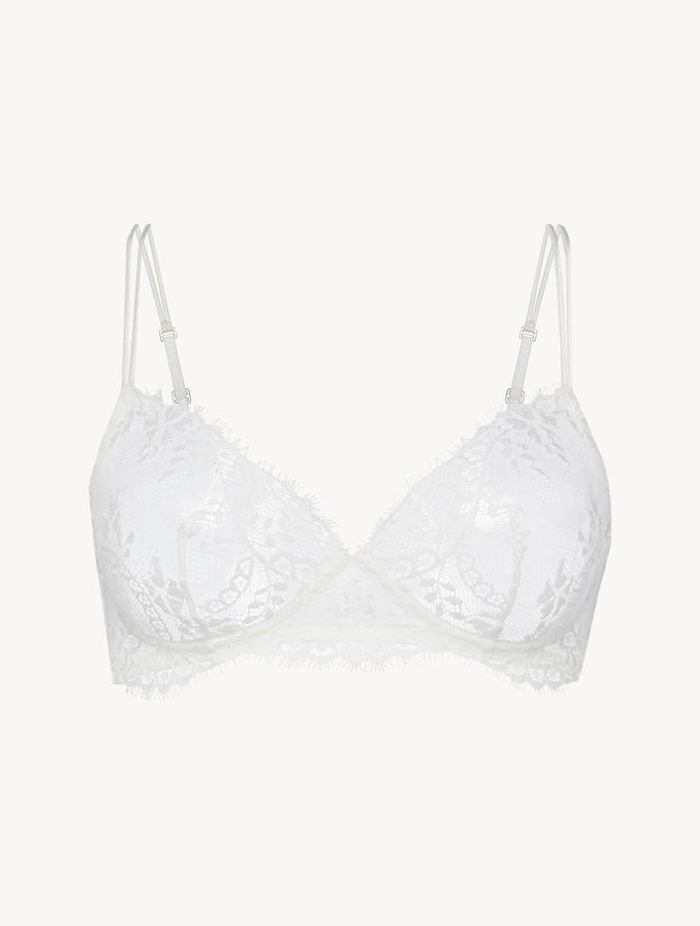 Áo ngực lót ren và vải tuyn Exotique co giãn ôm sát vòng ngực với kết cấu mềm mại. Phần ren Leavers quý giá được được chế tác thủ công phức tạp tạo ra một đường hoa uốn lượn tuyệt đẹp trên da, tăng thêm nét gợi cảm. Form áo không có gọng và không đệm lót để tạo cảm giác thoải mái và vừa vặn tự nhiên không thể cưỡng lại.